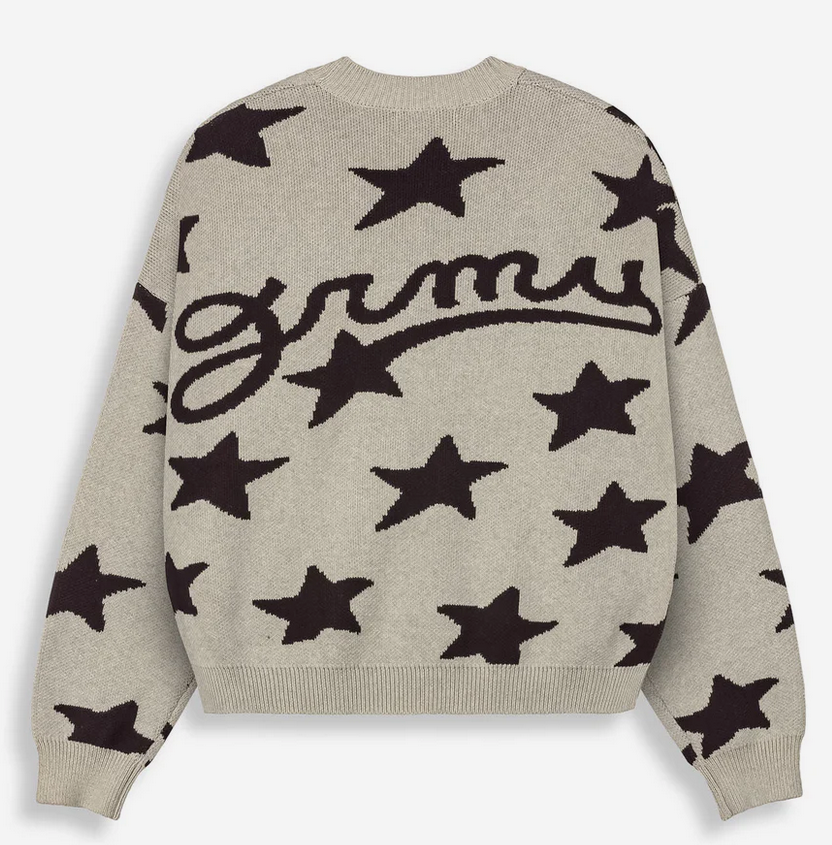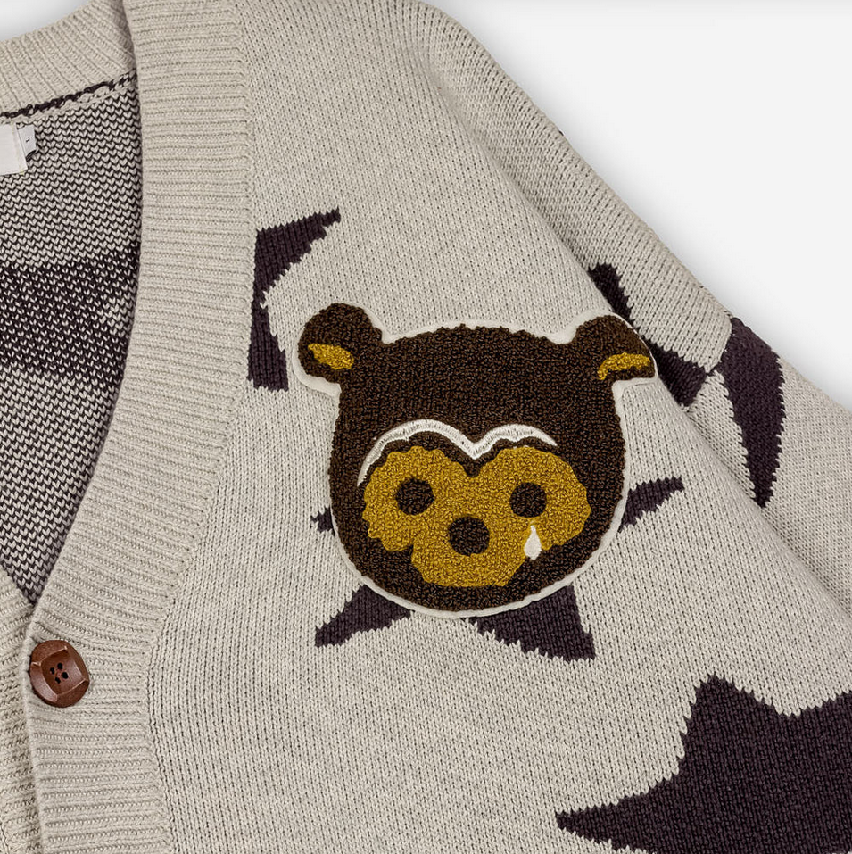 Cardigan oversize con fantasia stella e patch applicato sul davanti