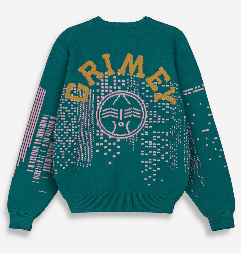Maglione giro collo oversize unisex con fantasia di contrasto e stampa