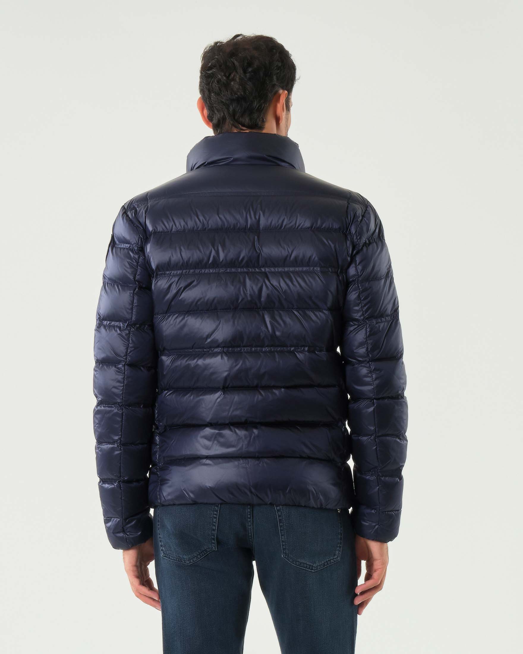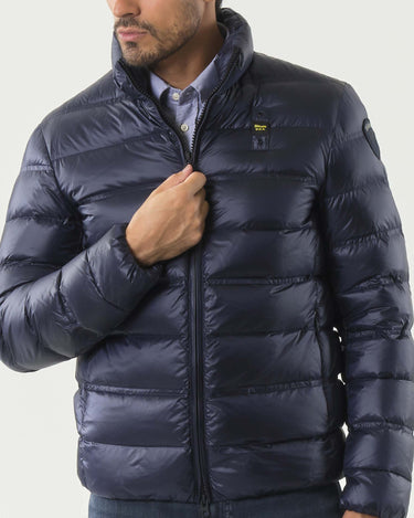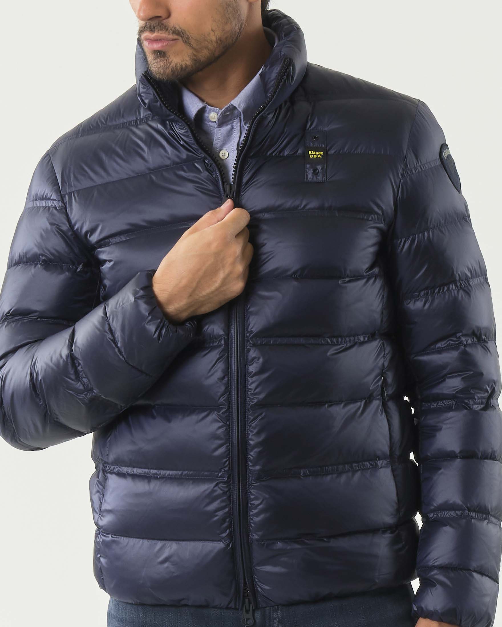 Giubbino lucido con strisce trapuntate singole e doppie alternate. Indumento Blauer iconico con imbottitura naturale, caldo e non ingombrante